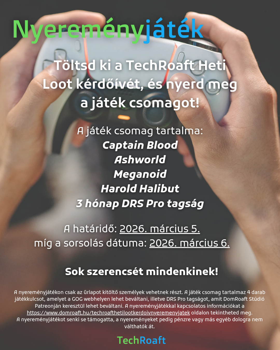 Ráadásul a kitöltők között kisorsolok egy nyertest, aki megnyerheti a „játék csomag”-ot, amiben 4 darab számítógépes játékkulcs és 1 darab 3 hónap DRS Pro tagság van.